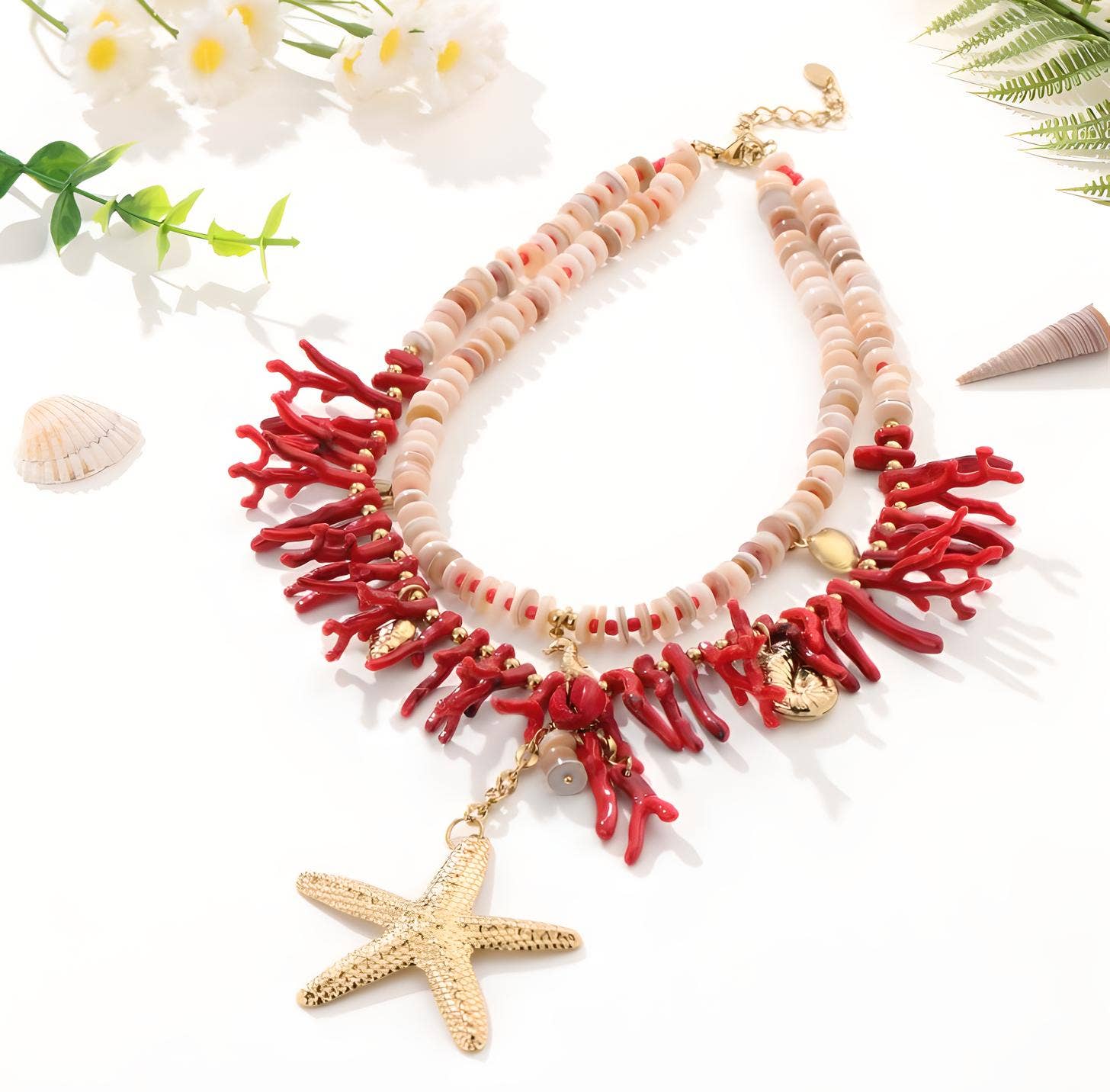 Handcrafted necklace inspired by the cultural richness of Mexico, featuring a red chili pepper pendant, a symbol of passion, protection, and vital energy. The design combines freshwater pearls, steel beads, and red coral beads, creating a vibrant and sophisticated contrast. Each element is carefully strung and finished with a stainless steel clasp for durability. Perfect for complementing bohemian, tropical, or summer looks, this necklace is not only a fashion accessory but also a meaningful amulet. In jewelry, the red chili pepper is recognized as a talisman against bad energies and envy, in addition to representing strength, prosperity, and good luck. Its intense color symbolizes passion and the joy of life, making it a piece that conveys power and charisma. Materials: red chili pepper pendant made of enamel, freshwater pearl necklace beads, steel beads, and red coral beads. 100% handmade with attention to detail. * Handmade with attention to detail and quality materials.