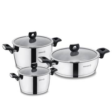 Whether you're looking to replace the tired, worn pans in your cupboards or equipping a kitchen for the very first time, look no further than this set of 15 Professional pots and pans from Jean Patrique. Each pan in the set has been carefully selected to ensure you'll always have what you need when cooking. The set includes a range of practical saucepans and frying pans, as well as a steamer and large capacity colander. Each item is constructed from superior stainless steel, providing strength and durability in a lightweight design. Take advantage of the exceptional heat distribution on any hob, while each pan is also oven-proof. When you're finished cooking, it's easy to pour sauces and liquids thanks to the easy-pour rims and the pan can be placed straight into the dishwasher.