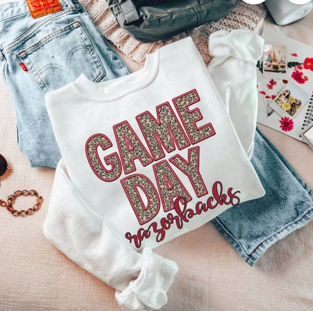 Game day red faux embroidered graphic tee / sweatshir