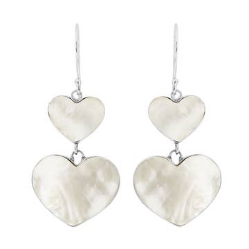 Wholesale AE-1170-MOP Sterling Silver Mother Of Pearl Double Heart Long Drop Statement Earrings