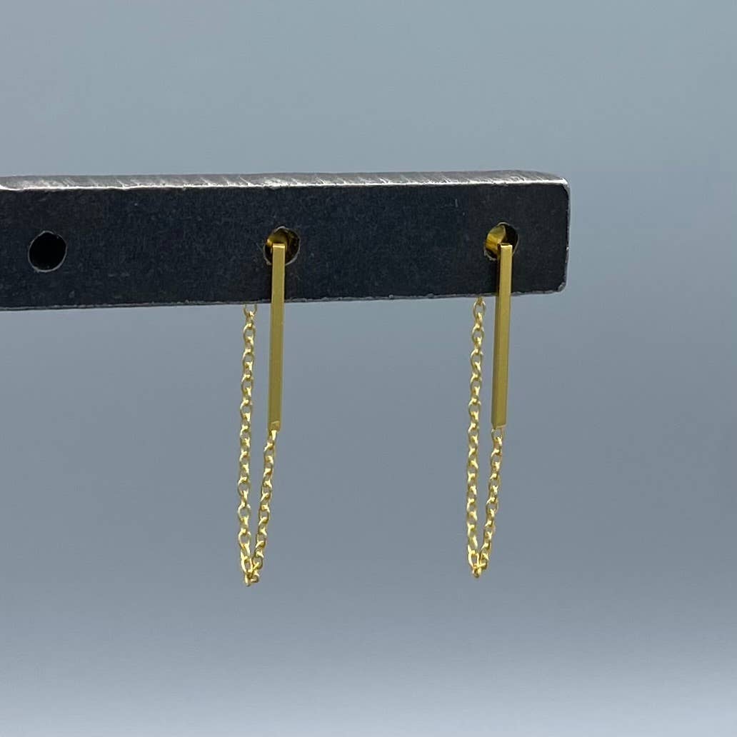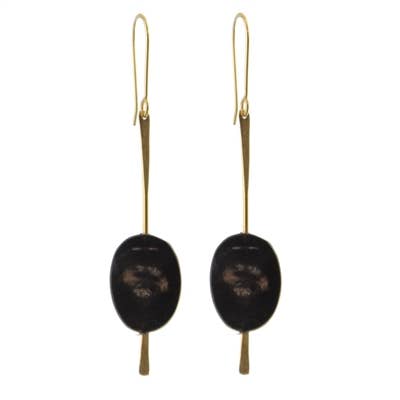 Earrings, black onyx, gold vermeil, about 2.75" long.