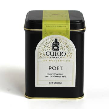 Emily Dickinson was born on December 10th, 1830 and lived in a home that was central to Amherst political society thanks to her father and brothers. Growing up around powerful men prepared Dickinson for a life of the same, but society dictated that, as a woman, she was relegated to seemingly less meaningful ventures. Her anger at this slight comes across in her poetry and letters where she explored complex ideas of meaning and self while examining the smallest details of the world around her. She withdrew herself from society and lived in relative solitude until her death. Only a few of her poems were made public during her lifetime, but four years after her demise, a collection of poems was published and met with popular and critical acclaim. Her poems reveal a complicated mind that examined itself with as much attention to detail as it examined the world. Dickinson's defiance of categorization and simplification make her a popular poet to study even today. In the years she spent away from society, Emily Dickinson cultivated an extensive garden. In it, she grew jasmine flowers, cornflowers, roses, and many other flowers, plants and herbs. These flowers appear repeatedly in her poetry so our blend had to be floral. We created a delightful combination of jasmine tea and rose petals that brews to a light ecru cup with long green leaves and rose petal accents. This delicate tea hits you with a strong jasmine taste that's sweetened and mellowed with the subtle flavors of the rose petals. 4oz tin. Blended & Packaged in Brookfield, CT, USA