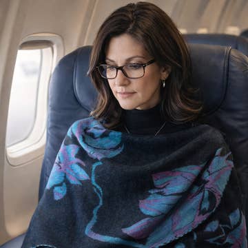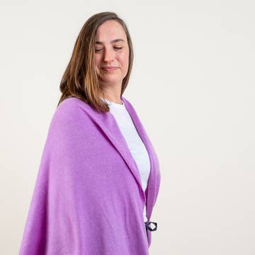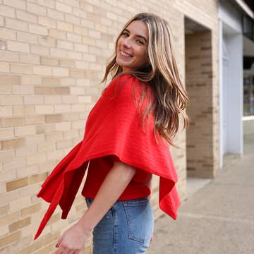 LUCIA Ultimate Travel Duster wraps customers in our signature blend of 10% cashmere, 40% merino fleece and 50% eco-viscose. This elegant, unfussy wrap resists pilling, stretching, and holds up beautifully. Part of our growing Travel Collection, Lucia goes from home to office to Maine Island ferry to jazzy evening on the town. Essential layer of cozy warmth for four-season travel. A customer favorite across all platforms. I wore my Deep Denim Heather Lucia for two months through Sicily. New neutrals, Tuscan jewel tones, and garden brights. Your favorites: Black, Southwest Turquoise, Holiday Red and Soft Chestnut. This piece is Teacher's Favorite — soft and cozy, with hands and arms free. Tuscan Classic.