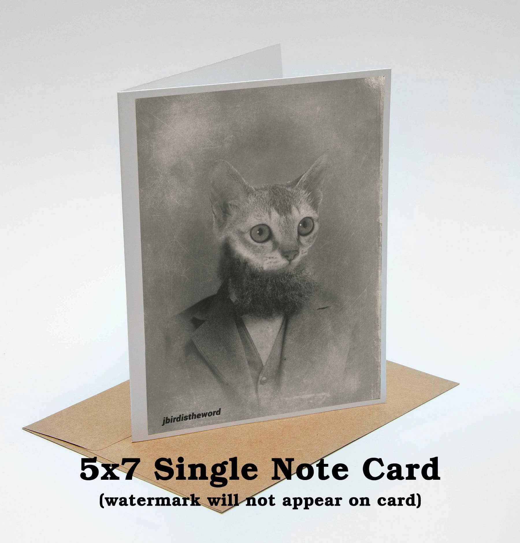 Card is 5 x 7 inches, envelope is 5.125 x 7.125 inches, 11 mil thickness. Great to receive with gifts or a simple "Thank you". * 11 mil Thickness * Printed on white 60lb. acid free high gloss card stock with a smooth surface on the inside for writing. * Printed with Canon Archival Inks which are archival up to 200 years * Thanks to its brilliant white tone, color on these cards pop and blacks are rich and deep. * Packaged in a clear acid free bag.