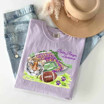 Original artwork by Georgia artist, Ashley B. Graham featured on the FRONT. features * 100% ring spun cotton * soft washed garment dyed fabric * relaxed, oversized fit * unisex cut No designs shown here are in use by any college or team, nor do they sponsor any university. All Gameday Imagery is part of collection of collegiate inspired works painted by artist, Ashley B. Graham. ***The Artwork featured on this shirt is the intellectual property of Artist, Ashley B. Graham. It is copyrighted by law under the Federal Copyright Act of 1976 and the Federal Visual Rights Act of 1990. Do not copy, modify or alter the artwork featured on this shirt without written permission from the artist. DUPLICATION IN ANY FASHION OF THIS PRODUCT IS PUNISHABLE BY LAW.