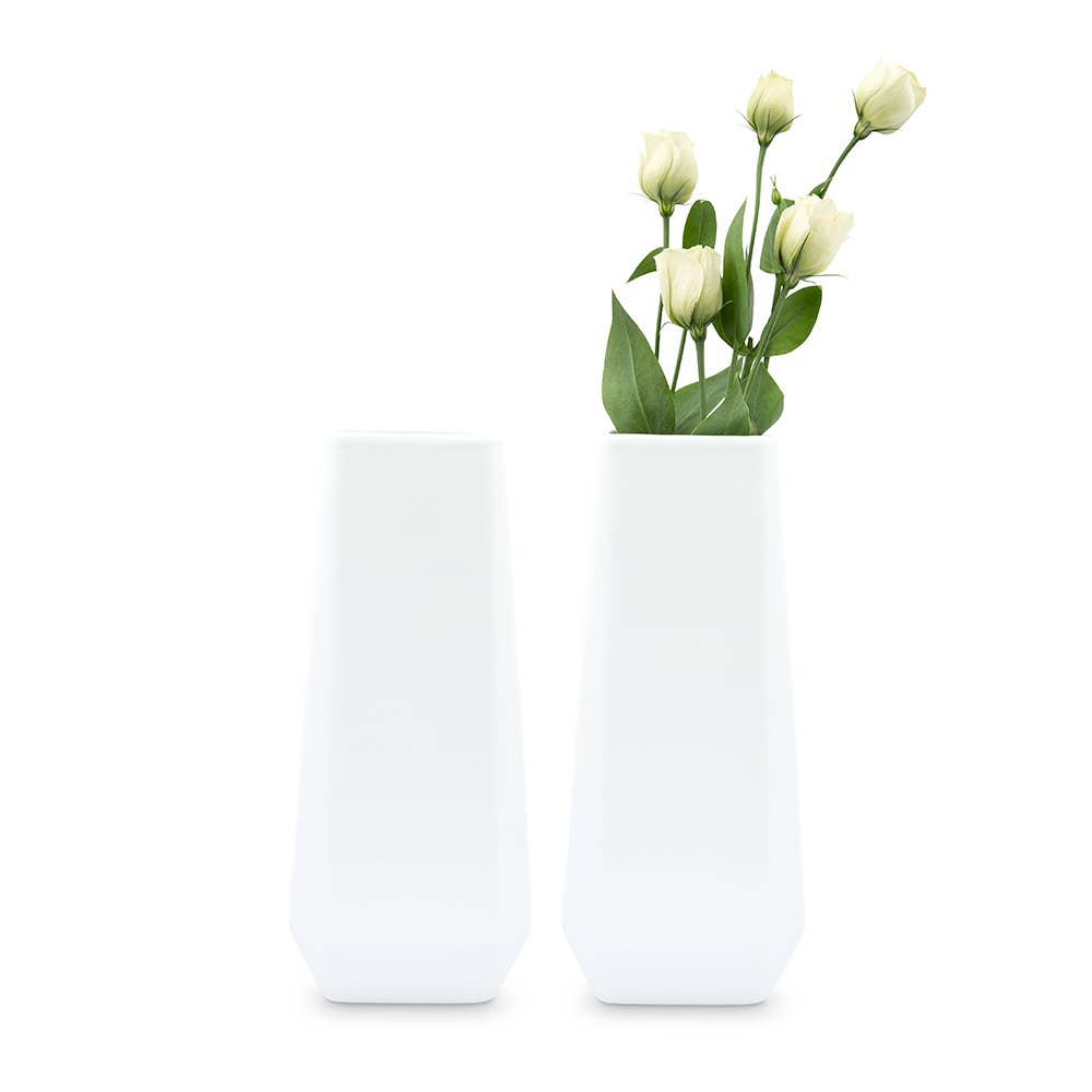 Pair Of Skinny Round Silver Chrome Colored Decorative Vases For Table Centerpieces Beautifully tapered and with a silver metallic finish, the tall thin cylinder flower vases are the perfect way to add brightness to your wedding table or decorative displays in your home. The sleek cylinder design is perfect for a variety of décor styles. With a height of 25.5", the vase is great for showcasing smaller floral arrangements, single flowers, or small bundles of greenery, whether those flowers and plants are real or artificial. Available at a cheap price, the chrome-colored surface of the vases adds a modern vibe to your décor for those that love a touch of silver in their space. The shiny flower vases can be arranged as part of your wedding table centerpieces or be an elegant element of your home décor, decorating shelves and more. Specifications •10" (H) x 4" (Dia.) •Ceramic •Includes 2 vases