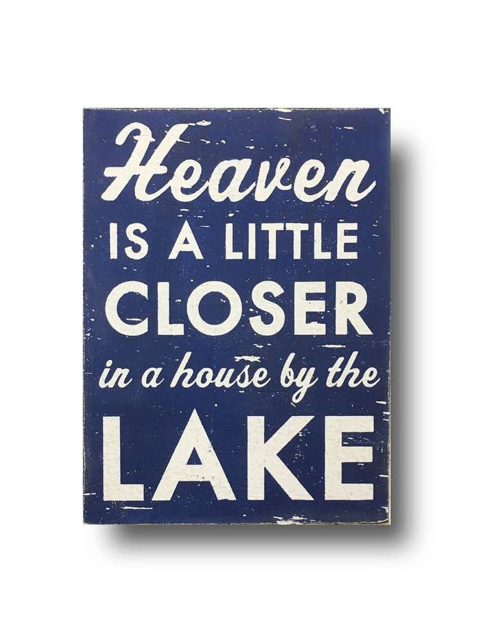 We love this 16 x 25 cedar lake sign. It's printed on weatherproof cedar planks and comes ready to hang.