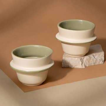 MADE TO ORDER. NEW: The design of Espresso Cups has been updated to this new more colorful style. And for the first time, ombré glazes are available! Cute, stackable, and versatile, the Espresso Cup is the perfect way to kickstart your day. Crafted to hold a hair over two ounces, this little cup is made for your colada, your doppios, your cortaditos, or even just a shot of bourbon. They stack beautifully so keeping a few right next to your espresso maker or on your bar is a no-brainer. CAPACITY: 2¼ fl oz to rim. CARE: Dishwasher and microwave safe. NOTES: Espresso cups stack nicely to save space.
