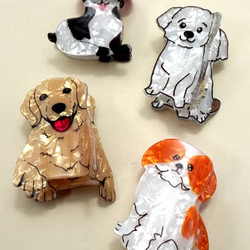 Add a touch of canine charm to your hairstyle with this Acetate Poodle Hair Clip! Designed for dog lovers, this beautifully crafted hair accessory features a graceful poodle silhouette, made from high-quality acetate for a smooth, glossy finish. The strong and secure clip holds your hair in place comfortably, making it perfect for everyday wear or special occasions. Whether you're a proud poodle owner or simply adore small dogs, this hair clip is a stylish and playful addition to your collection.