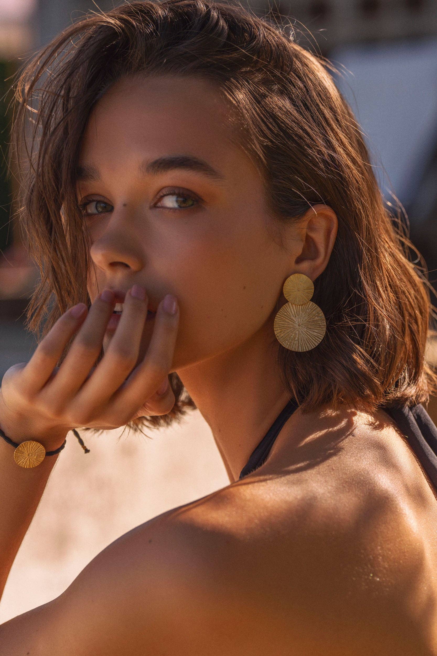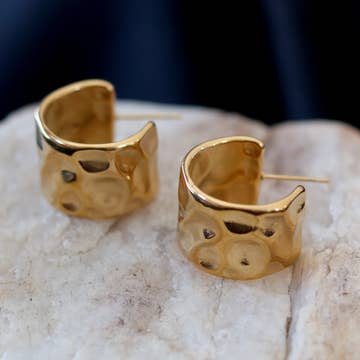 Crafted with 24K gold plating and finished by hand, the Venezia Earrings reflect a modern elegance that feels both distinctive and wearable. Their double-circle silhouette plays with proportion and texture, catching the light in every movement. Ideal for a day-to-night transition, these earrings are lightweight and hypoallergenic, making them perfect for all-day comfort and sophisticated styling. Details • 24K gold plated • Textured finish on the lower hoop • Lightweight and hypoallergenic • Nickel-free • Handcrafted in Portugal