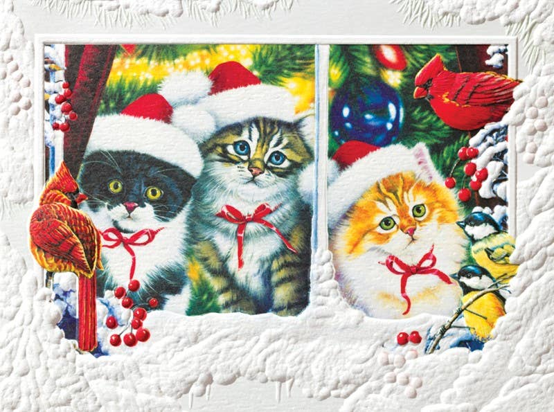 Wholesale Cat with Christmas Tree Ornament, c. 1960's Christmas Cards