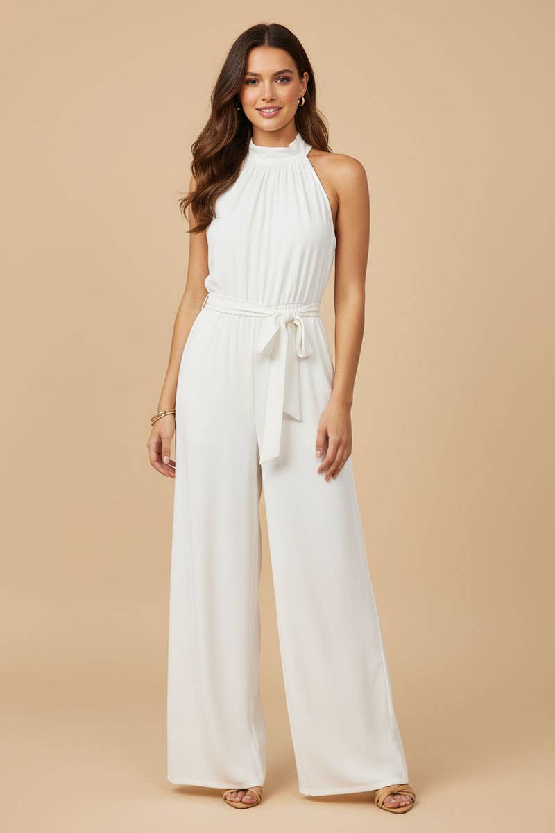 new bandeau ruched skinny jumpsuit with belt style: chic type: jumpsuit material: polyester neckline: bandeau sleeve style: sleeveless length: long pattern type: plain fit type: skinny with belt: yes occasion: daily