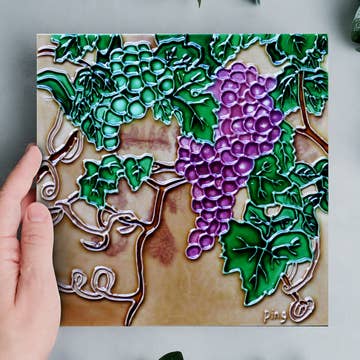 Trivets are 6ó square ceramic tile with cork backing to prevent slipping and scratching. Trivets are sold individually and come packaged in a sealed clear sleeve with an artist's bio. Images are permanently sublimated onto the tile, leaving a glossy finish. Trivets can handle both hot and cold temperatures. While they are food safe, please do not submerge in water, put in the microwave, or in the dishwasher.