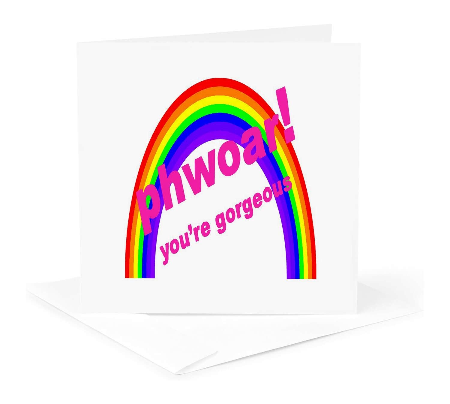 Greeting card with a blank interior. Individually wrapped with a plastic sleeve with a matching envelope. Card measures 4.25 x 5.5.