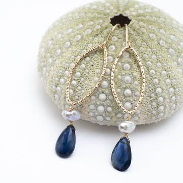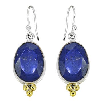 Sterling silver & gold fill. Available with moonstone, ruby, labradorite, kyanite, or Pariba kyanite. Dimensions: Length: 1 3/4" Width: 1 3/4" Materials: Sterling silver, gold fill, semi-precious & precious stones. Ear wire: Sterling silver lever back