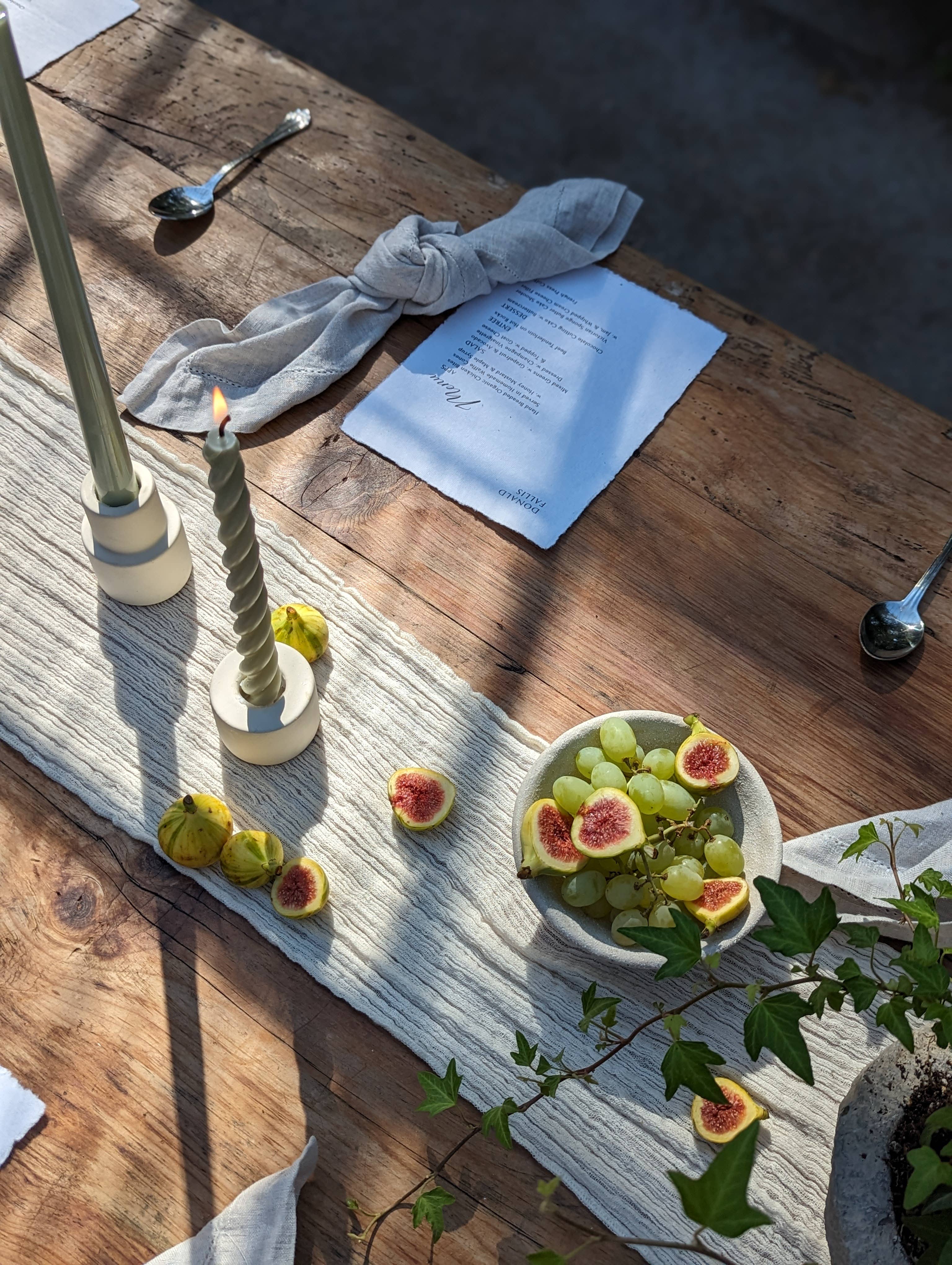 When we were visiting upstate New York, we were lucky enough to stop into Cave Glow in person. Their beeswax candles are some of our very favorite to use when we're setting the table for weddings and special events for clients. Now that we're opening a brick and mortar, we absolutely had to carry them for others to enjoy. The quality is so good and the designs are fun. We love the different color options we were able to choose and we enjoy knowing we're supporting this sweet family. :)