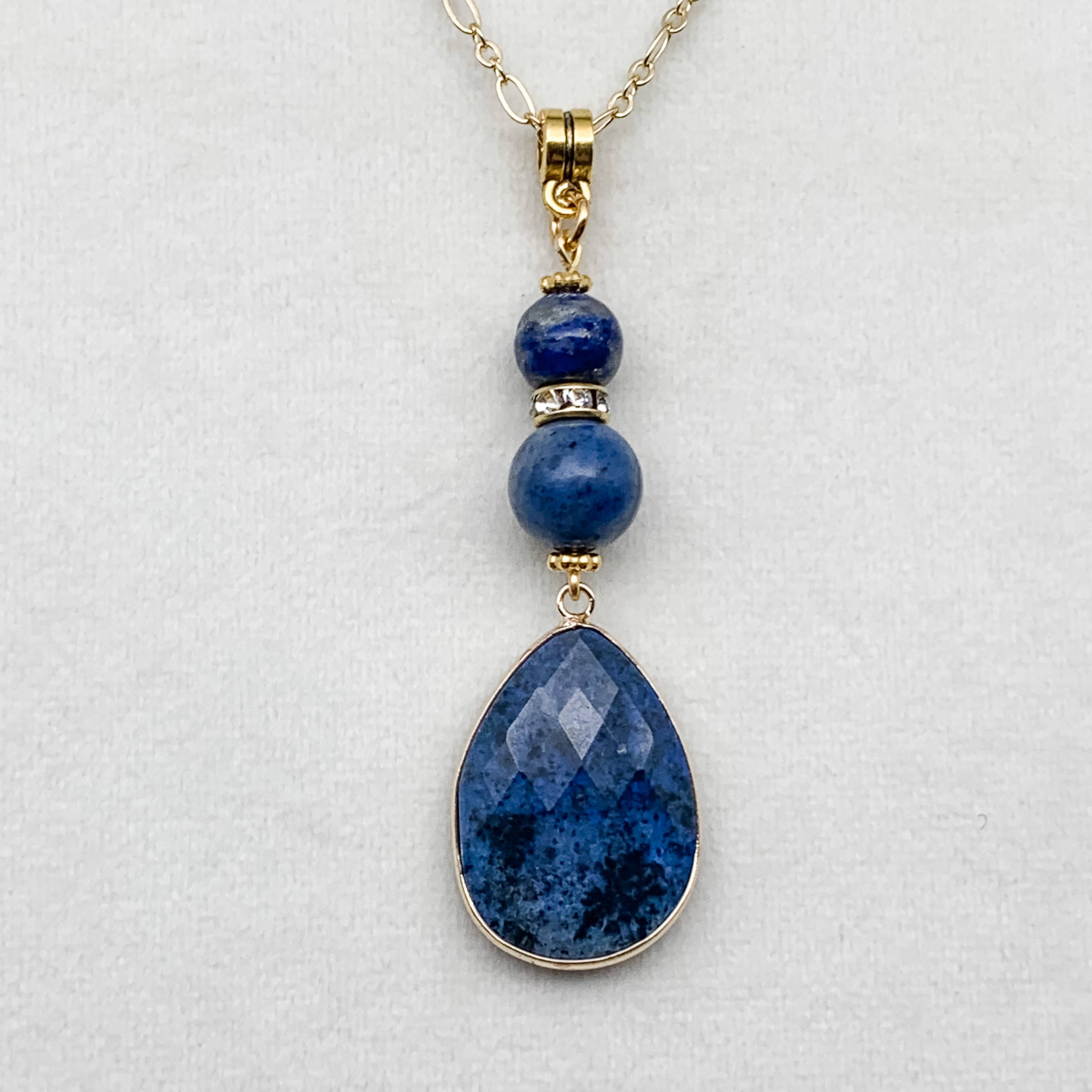 This unique necklace features a gorgeous, plump Lapis Lazuli pendant wrapped securely and generously in 14k gold filled wire, and suspended from delicate yet sturdy 14k gold filled rolo chain. Shown in 14k Gold Fill but also available in 14k Rose Gold Fill or Sterling Silver. Lapis - approx 10x25 mm. Length - shown at 28 inches long from clasp end to end. This lapis is 100% natural and untreated.
