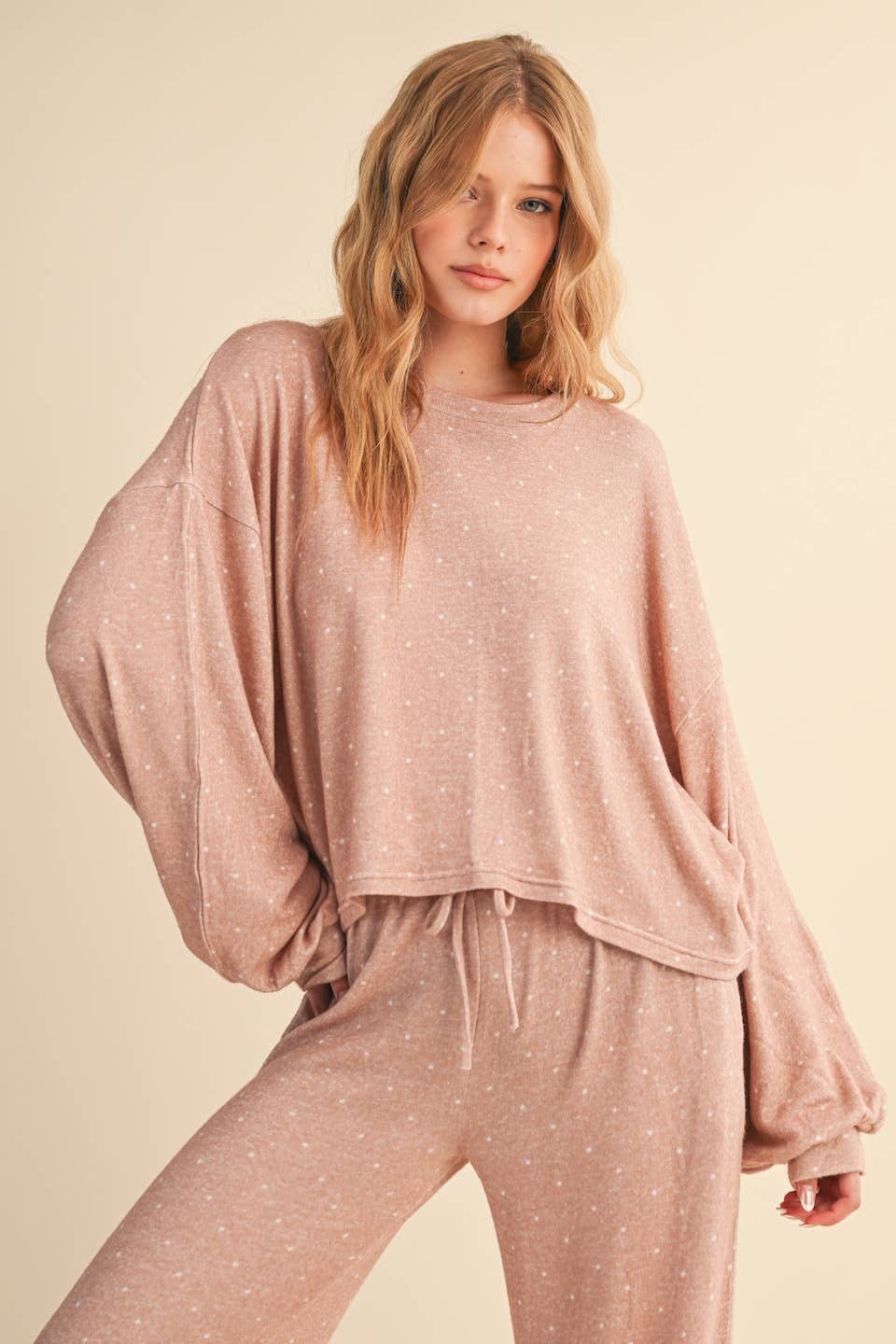 This pullover was a hit with my customers. It sold out fast a long with the matching cacoon pants. Very soft to the touch. We loved it!