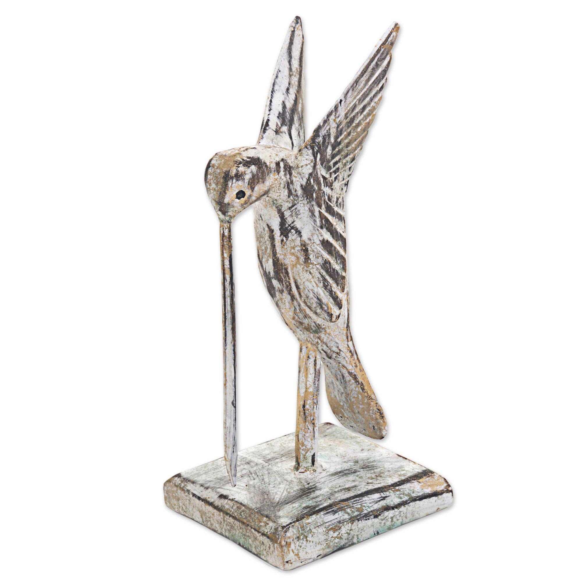 At T&K Metal Works in Zimbabwe, sculptors weld recycled metal to create these graceful crested crane sculptures. Each sculpture is finished with varnish to protect against the elements. Sold singly; two sizes available. Weathering is to be expected if the sculpture is exposed to elements over time. Because this is a handcrafted item, each will vary. Dimensions: Small: 4"L x 4"W x 14"H Medium: 8"L x 9"W x 27"H Crafted from: Recycled metal, paint