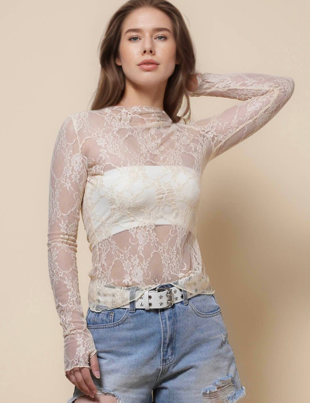 No reviews for Ladies Round Neck Blouse See Sheer Mesh Layring Top SKT4942 yet.