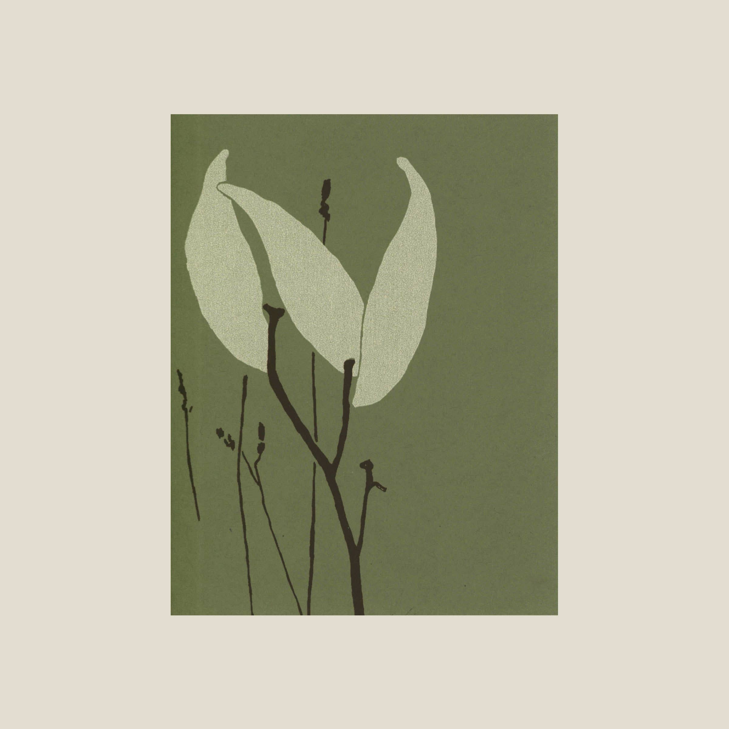 This card is hand silk-screened with yellow, light yellow, and grey ink on 100# French’s recycled Steel Blue Construction cover, and comes with a white envelope. The inside is left blank for your own message. This card is sold as a single. Each single comes in a clear sleeve. Finished size is A2 (5.5 × 4.25").