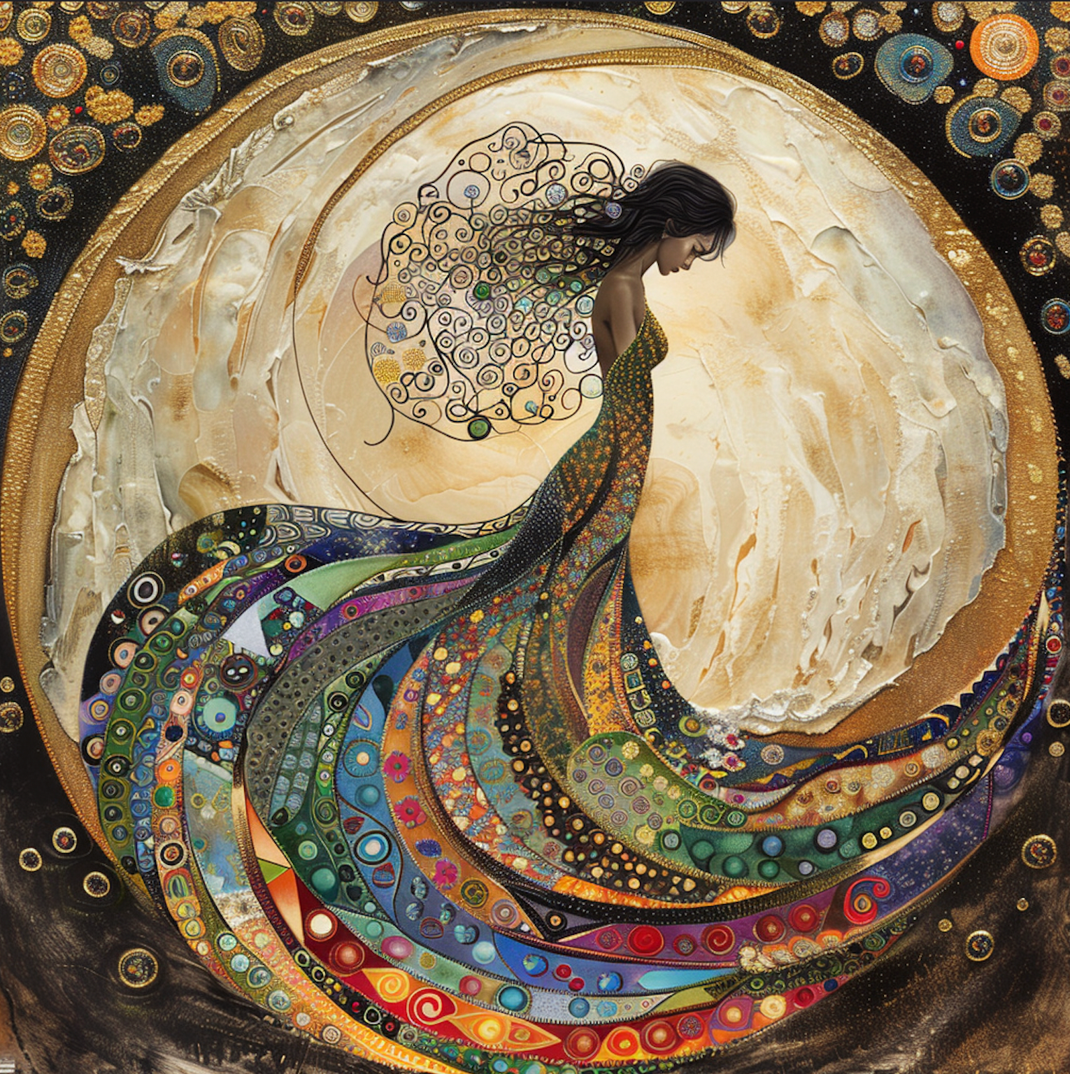 Mystical Moon Goddess Tambourine and Ribbon Wall Art, Bodhi Goddess