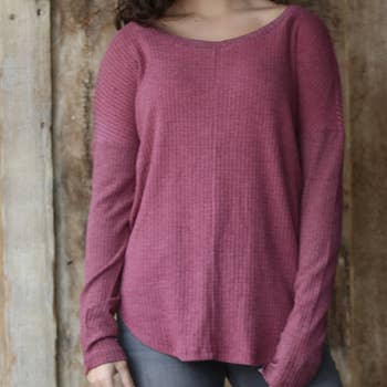 ***Image usage is allowed to the buyers who purchase from us via Faire only. SI-25202 RIBBED LONG SLEEVE ROUND NECK TOP Fabric Content: 60% RAYON 28% POLYESTER 22% NYLON