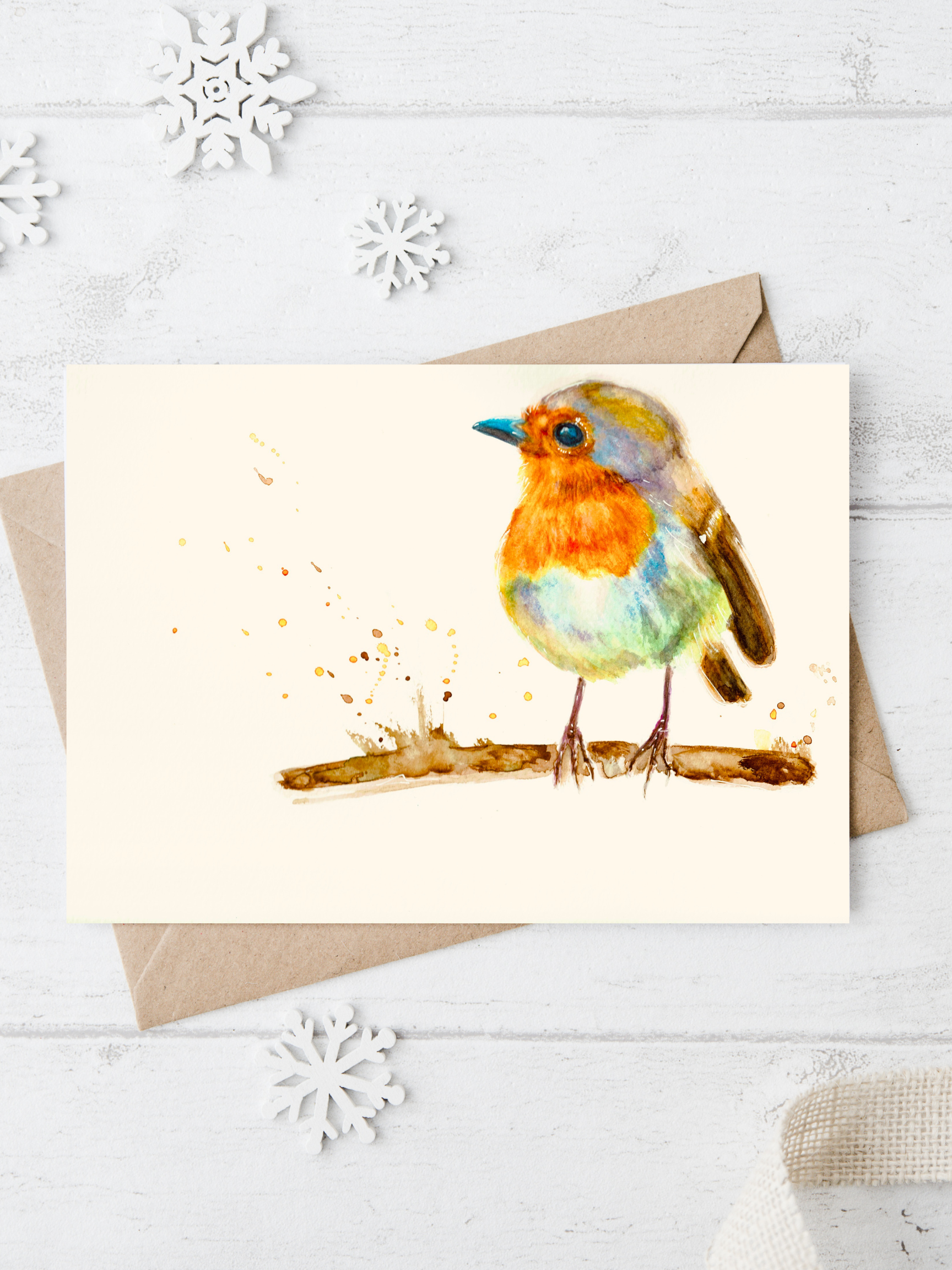 Mini folding card made from Amalfi handmade paper with natural edges and a soft feel. Watercolour painting combined with elegant gold foil embossing, plus a grey envelope. dimensions: 7.5 x 10.6 cm Additional information: Blank inside Grey envelope