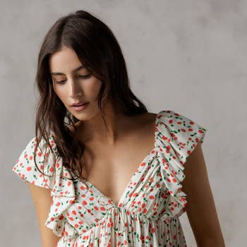 No reviews for Square-neck form-fitting floral print T-shirt yet.