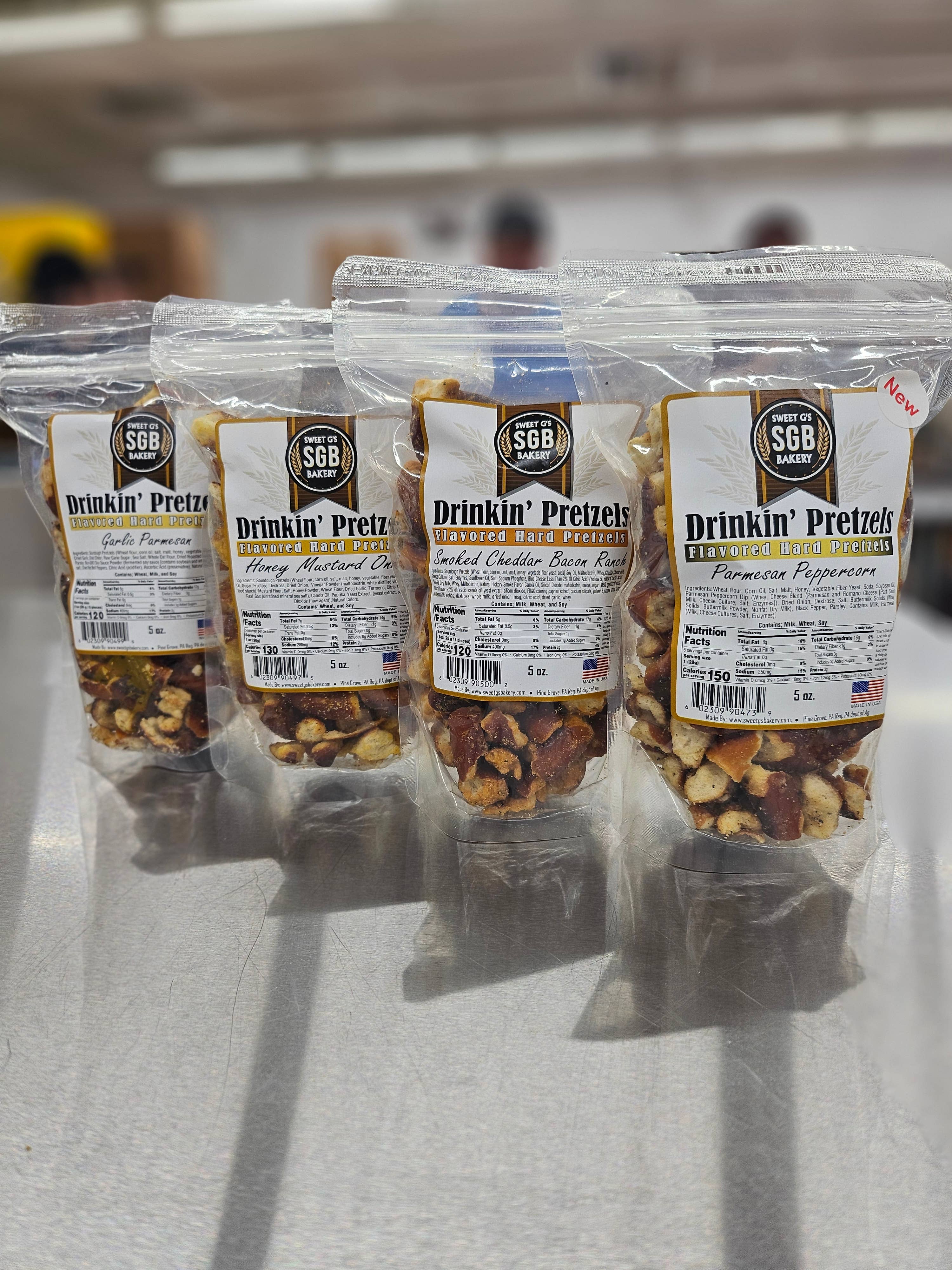 SKU: 8HM6OZ Made in United States Contains: Wheat Diet: Low fat, Nut-free, and Sugar-free Ingredients: Handmade pretzels (water, flour, yeast, salt, soda). Canola oil. Honey Mustard Powder. Production: Locally sourced, No artificial sweeteners, No preservatives, and Non-GMO Shelf life: 3–6 months Storage: Shelf-stable Weight: 170.1 g (6 oz) Dimensions: 20.3 x 12.7 x 6.4 cm (8 x 5 x 2.5 in)