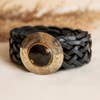 Made in India Belt Width: Medium Embellishment: Fur Trim and Studded Fabric: 100% natural hand-braided leather Occasion Theme: Everyday Season: Core Product Language: English and Spanish Weight: 200 g (7.05 oz) Dimensions: 116 x 5 x 6 cm (45.7 x 2 x 2.4 in) Product Materials: Plastic-free Packaging: Plastic-free Production: Ethically sourced