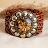 This handcrafted 100% leather belt combines the rustic charm of western style with an elegant and distinctive touch. Its oval silver metal buckle, decorated with a bull's head and a central turquoise stone, makes it a unique piece that enhances any look. The handcrafted braided leather in natural brown tone adds texture and character, ideal for those seeking an accessory with identity and cowboy soul. Hook closure that adapts to any figure. Available in 2 leather strap colors, in black or brown. Details: Material: 100% genuine leather Color: Natural brown Oval metal buckle with turquoise stone Handcrafted braided design Western inspiration Ideal for jeans, dresses, or boho-chic looks Perfect for boutiques that bet on accessories with authentic style and unique details. Measurements: Strap: length 116 cm width 5 cm. Buckle: length 8 cm and height 6 cm. summer boho cowboy Mother's Day teacher gifts