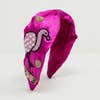 Fuchsia Satin Headband with Embroidered Flamigos