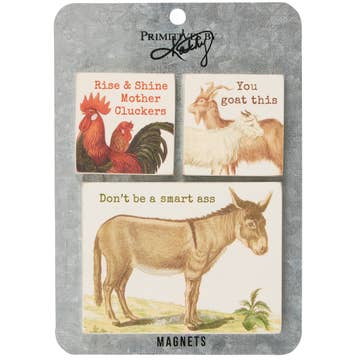 HANDCRAFTED IN MY NEW YORK STATE STUDIO, USA, 30X40MM (1.18" X 1.57") LARGE OVAL GLASS MAGNETS FEATURING MY ORIGINAL ILLUSTRATIONS OF COUNTRY FARM ANIMALS IN A SEPIA TONE, THAT EVOKE A SENSE OF NOSTALGIA AND WHIMSY. STRONG ADHESIVE 3/4" SQUARE 3M MAGNET ON BACKS. 5 FARM ANIMALS TO A PACK, ADHERED TO CREAM-COLORED, HEAVY CARD STOCK WITH A HANDCRAFTED SCALLOPED EDGE. A GINGHAM BOW COMPLIMENTS THE COUNTRY VIBE— (BOW COLORS MAY VARY DUE TO AVAILABILITY, BUT EACH SET WILL HAVE THE SAME COLORED BOWS THROUGHOUT). MAGNETS ARE PACKAGED IN AN ARCHIVAL, ACID-FREE CELLOPHANE POUCH.