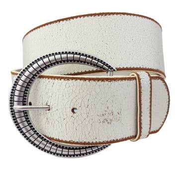 Wide Width Belt in a vintage/distress/Crack genuine leather This is a wide width belt at about 2.2" wide or 55 mm This is more of a waist belt since the width will not fit in jean loops if to wear at hip. Buckle is a matte silver metal plating. Dimension of buckle is 3.5" x 3.5" Quality vintage leather and edge is sand-off to show the distress look! Measurement of of Strap from the start to the middle hole S/M: 32", M/L: 35", L/X: 38" From the middle hole to the tip end is 5" more For example, total strap length of M/L will be 35" + 5" = 40"