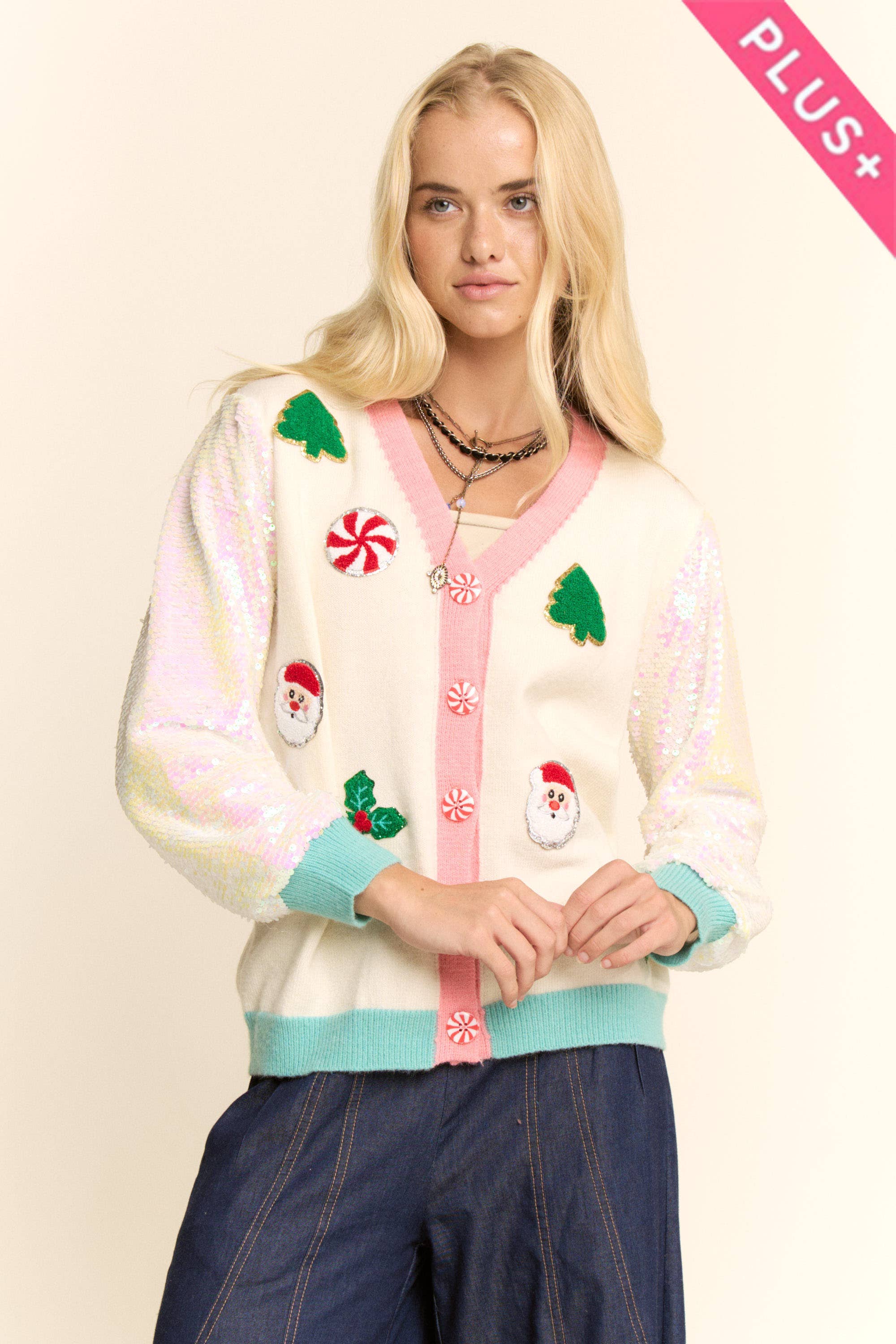 RED Elk Gingerbread Man Snowflake V Neck Cardigan for wholesale on Faire3