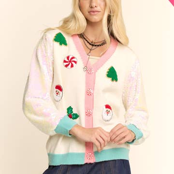 RED Elk Gingerbread Man Snowflake V Neck Cardigan for wholesale on Faire