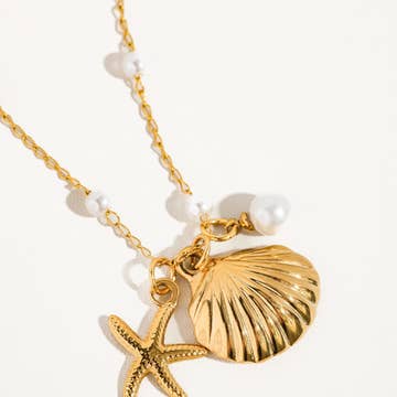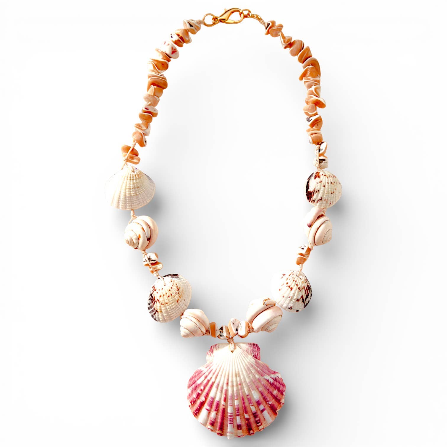 hawaiian sunrise shell, freshwater pearl, 14k gold filled chain and findings. length 16" adjustable