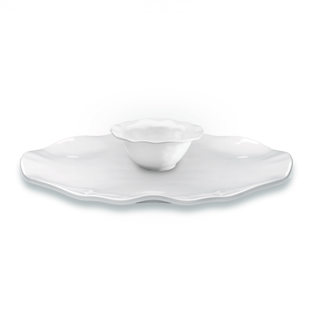 Our Ruffle round dinner bowl in white, features our signature textured design. Whether you're enjoying a homemade macaroni and cheese or pasta puttanesca, this round dinner bowl from our Ruffle series is perfect for year-round, indoor and outdoor dining. Made of 100% melamine, this BPA free dinnerware is virtually unbreakable and resembles ceramic and porcelain. Dimensions: 9.5" diameter x 1.6" height