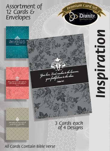 Cards are 4.75" x 6.625"; 12 cards & envelopes card1: Sentiment: You Got This!; scripture: I can do all things through Christ who strengthens me. Philippians 4:13 card2: Sentiment: Be Strong; scripture: Finally, my brethren, be strong in the Lord and in the power of His might. Ephesians 6:10 card3: Sentiment: So Rest In God; scripture: My help comes from the Lord, who made heaven and earth. He will not allow your foot to be moved; He who keeps you will not slumber.