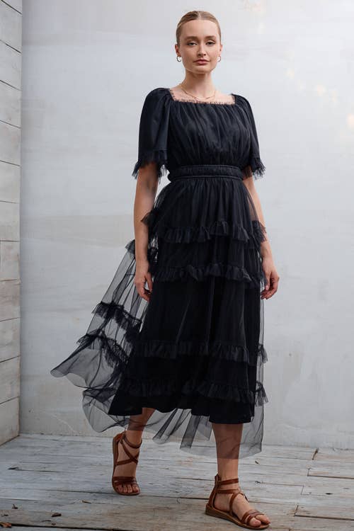 Wholesale Annabel - Romantic Cottage Goth Tiered Dress - READY TO SHIP