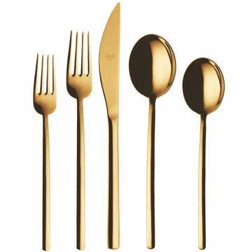 Elyon Tableware This flatware set comes in solid colors and two-tone sets. Design - This modern flatware set features long thin handles that will feel right in your hands. Each utensil is weighted to perfection for maximum comfort. Quality - The silverware is 18/10 durable premium stainless steel, designed for long-lasting use. Usage - This beautiful matte stainless steel color plated flatware set will impress your guests. It’s perfect for parties, restaurants, or date nights at home. Host some friends and enjoy your meal with this modern set, or gift it to a friend so they can serve in style. Care - This matte-finished cutlery set is easy to clean by hand and is also dishwasher safe. However, we recommend hand washing for longer-lasting shine and quality. Includes: 4 x Dinner Spoon, 4 x Dinner Fork, 4 x Dinner Knife, 4 x Dessert Spoon, 4 x Salad Fork If you are interested in more inventory than what is listed, please reach out for availability.