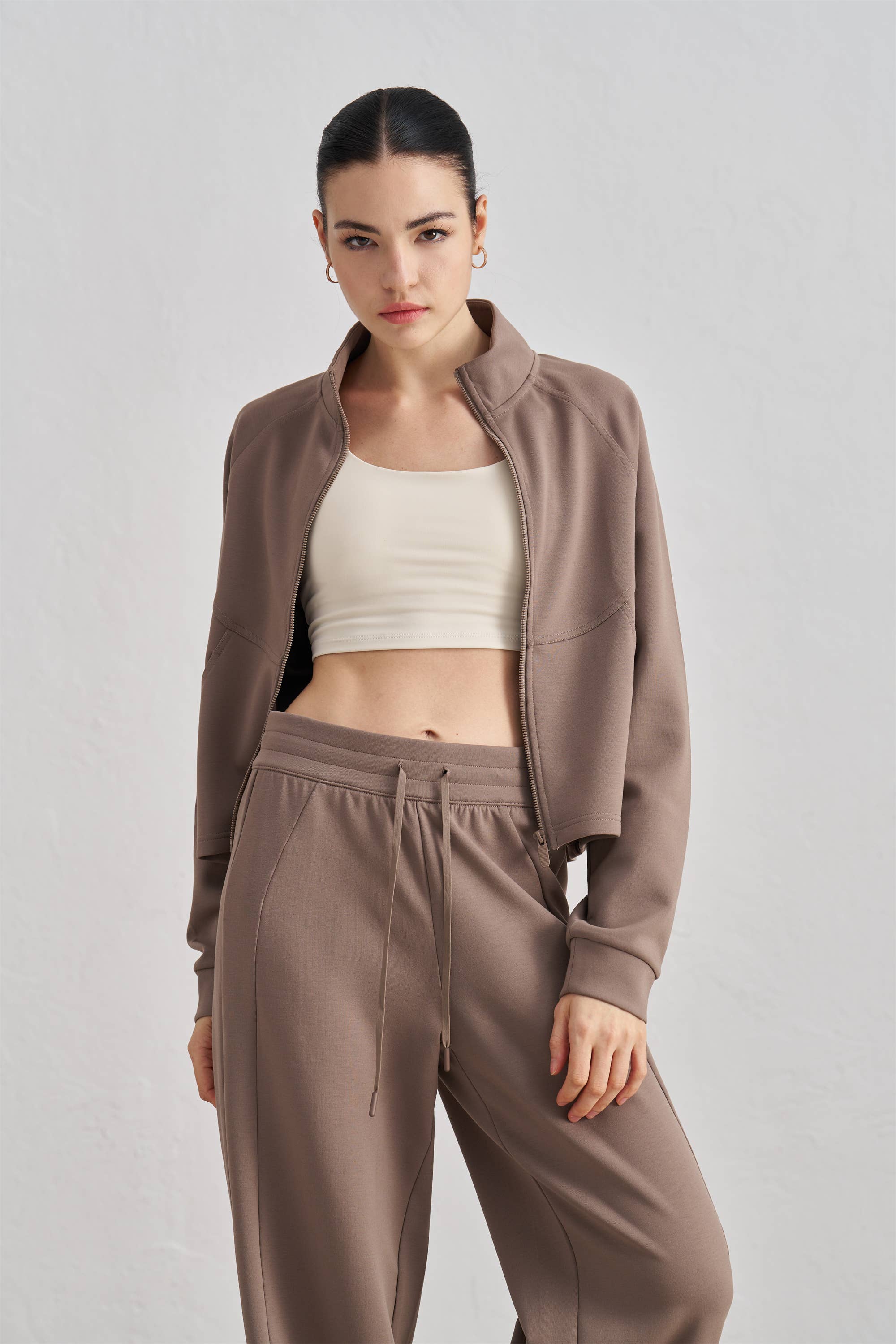 The Chandra Active Jacket is a staple piece designed for the dynamic lifestyle. This jacket features a full-zip front and a high collar for adjustable coverage. The streamlined design includes a functional pocket with a sleek, concealed zipper, perfect for securing small essentials on the go. Crafted for comfort and ease of movement, its relaxed fit allows for effortless layering without bulk. With subtle detailing and a refined look, this jacket is an ideal companion for pre and post-workout, travel, or casual outings.