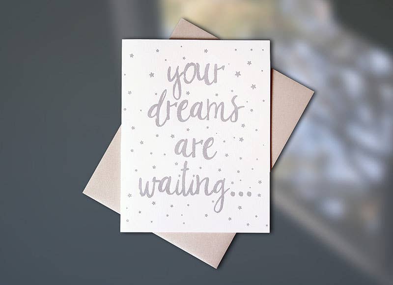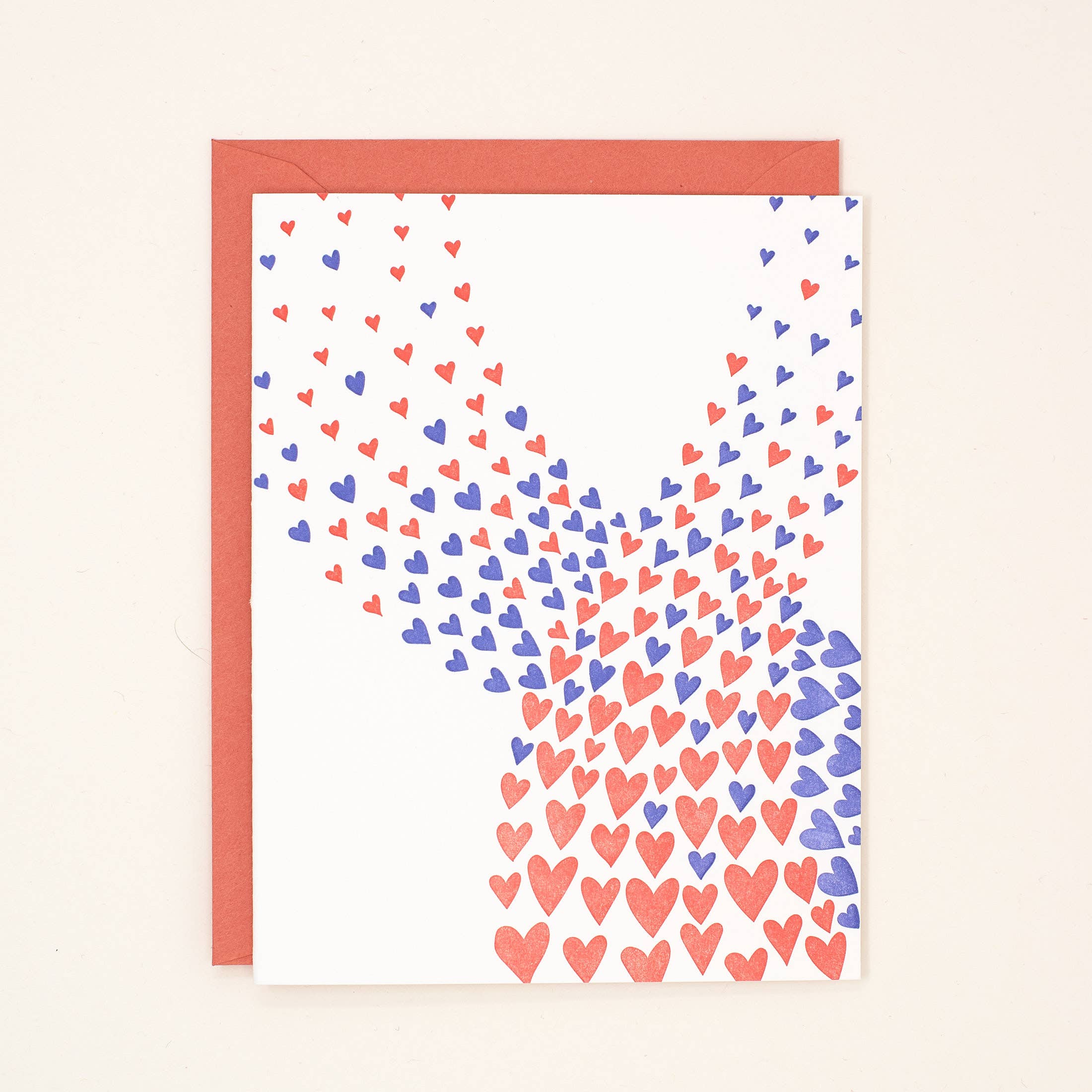 Letterpress printed A2, 4.25" x 5.5" single cards. Folded, blank interior, packaged with clear cello sleeve and coordinating envelope. Letterpress Card. Handprinted.