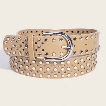 SKU: GBCLGXS Made in China Belt Width: Medium Color: Brown Embellishment: Studded Fabric: Genuine Leather Weight: 195.61 g (6.9 oz)