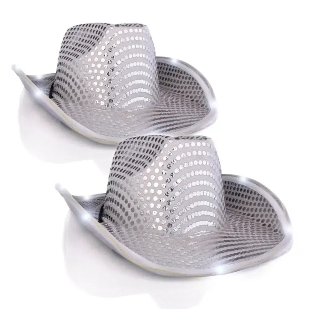 LED Flashing Cowboy Hat with Black Sequins Pack of 2