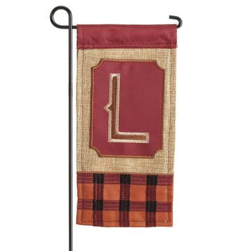 DOUBLE APPLIQUE MINI FLAGS 4" W X 8.5 H INDIVIDUAL BAG WITH HANGING HEADER CARD FLAG POLES ARE INCLUDED WITH THESE MINI FLAGS. PERFECT FOR PLANTERS, PERFECT FOR WREATHS, PERFECT FOR ANY FLORAL ARRANGEMENTS OR ANYTHING THAT NEEDS A MONOGRAM ACCENT. Order letters individually or by the assortment which is a different SKU number. M040019AFAL