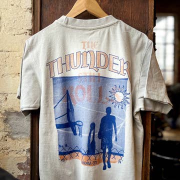 Cruise through the city in style with this cream tee, spotlighting a bold red cable car gliding up a hill. A blue outline of a bridge and sun frames the scene, giving the graphic a playful, modern pop. Perfect for fans of iconic city vibes and standout streetwear. Fit Semi-slim but not tight. Size up if more flow and drape is desired. Wear your normal size for a semi-slim look. Fabric Super soft and breathable. 4.3 oz. 100% ringspun cotton