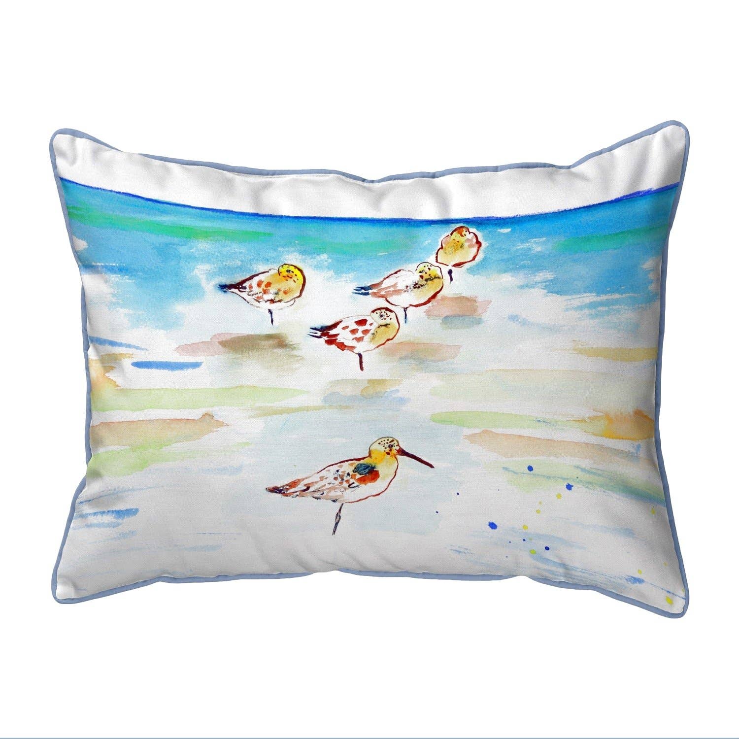 Beautifully embroidered with Sandpipers sprinting along the beach, this indoor lumbar pillow features fringed edges and hidden zipper. • OVERALL HEIGHT (IN INCHES) - 13 • OVERALL WIDTH (IN INCHES) - 26 • OVERALL DEPTH (IN INCHES) - 7 • TOTAL WEIGHT - 4 • TYPE - Throw Pillow • COLLECTION MATCH PRODUCTS - I Sea Life Coastal Collection • STYLE - Coastal/Sealife/Beach • SHAPE - Rectangle • DISTRESSED - No • MATERIAL COVER - 100% Cotton