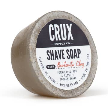 At CRUX Supply Co. we believe a great lather doesn't come out of a can. Behold, shave soap, the old fashioned way of lathering up before shaving clean. Our bar is made with bentonite clay, a form of volcanic ash, which helps detoxify and cleanse your skin. Our Shave Soap also boasts the CRUX signature scent of rosewood, cypress, and bergamot; a heady mix of essential oils that turns shaving into morning meditation. Just add water, lather up, and look forward to a smooth shave every time.